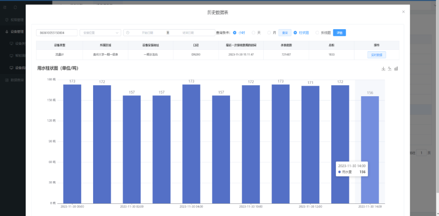 智慧水務(wù)管理云平臺(tái)大數(shù)據(jù)界面