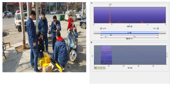 經(jīng)檢測,兩個設備均發(fā)現(xiàn)在距離其中一個檢查井8.4米有明顯峰值,為漏水點的位置。