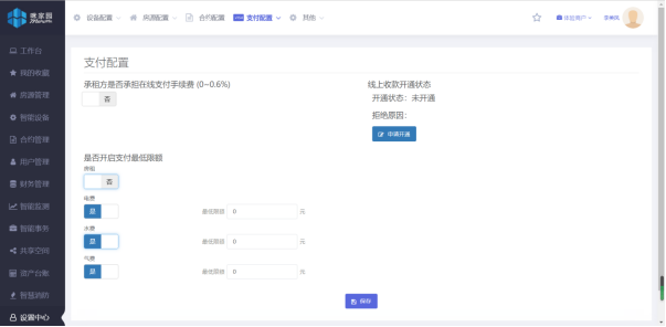 設(shè)置中心 | 1、支持設(shè)備計費方式自由設(shè)定;通電驗證,確保學生用電安全;費用單價、余額報警統(tǒng)一設(shè)定或個性化設(shè)定,滿足不同需求;是否斷電、賬單生成及提醒時間可自行設(shè)定;支付手續(xù)費可設(shè)定任意比例由學生方承擔,人性化管理; | ||||
