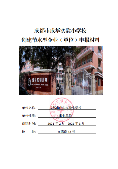 2021年四川省觸點(diǎn)水平衡科技公司順利協(xié)助成都市成華實(shí)驗(yàn)小學(xué)校完成節(jié)水型學(xué)校申報(bào)成功。