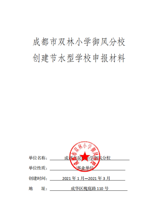 2021年四川省觸點(diǎn)水平衡科技公司順利協(xié)助成都市雙林小學(xué)御風(fēng)分校完成節(jié)水型學(xué)校申報(bào)成功。
