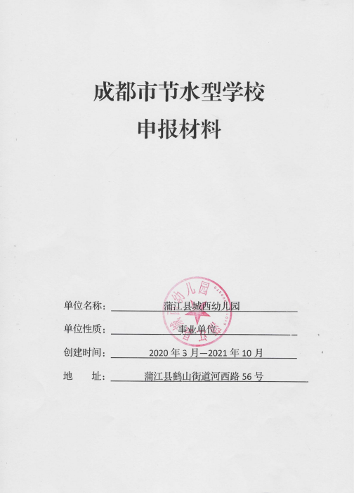 2021年四川省觸點(diǎn)水平衡科技公司順利協(xié)助蒲江縣城幼兒園完成節(jié)水型學(xué)校申報(bào)成功。