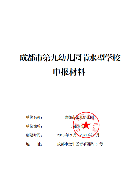 2021年四川省觸點(diǎn)水平衡科技公司順利協(xié)助成都市第九幼兒園完成節(jié)水型學(xué)校申報(bào)成功。