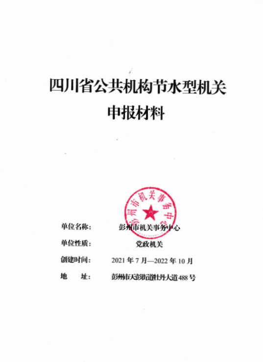 2022年四川省觸點(diǎn)水平衡科技公司順利協(xié)助彭州市機(jī)關(guān)事務(wù)中心完成四川省公共機(jī)構(gòu)節(jié)水型機(jī)關(guān)申報(bào)成功。